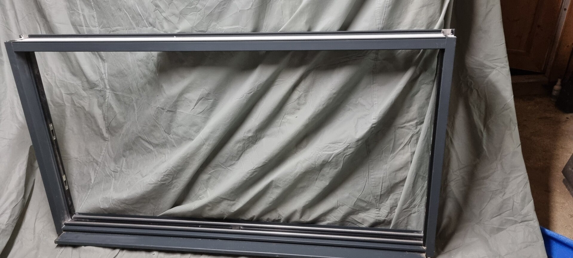 fenêtre aluminium coulissante grise.